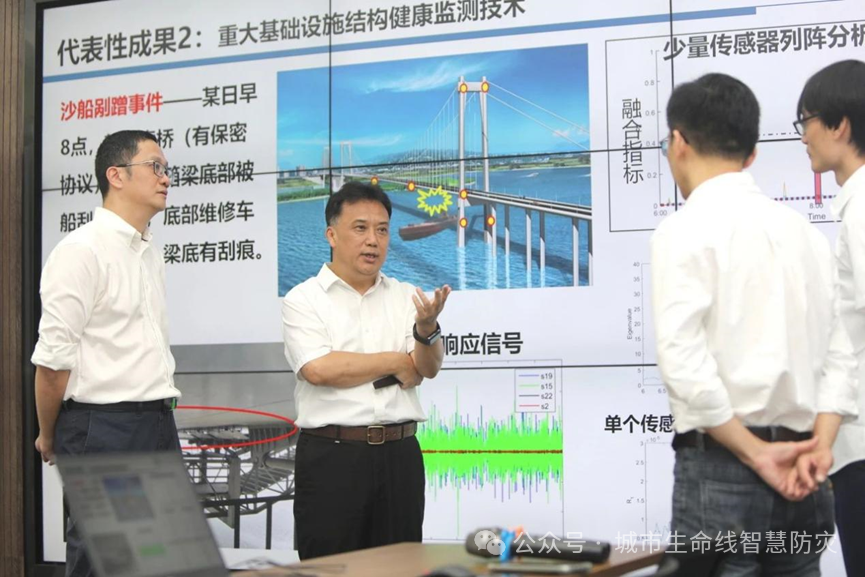 针对大湾区水系发达、桥梁众多,长期面临高温、高湿、高盐等恶劣服役环境和台风、暴雨、洪涝等多灾害的耦合影响风险,团队研究建立了一整套基于少量传感器和人工智能算法的长大桥梁安全监测运维平台,已在东莞市水道特大桥、大汾北特大桥两座桥梁完成设备安装与平台部署,为桥梁长期安全运行提供科学有力技术保障。