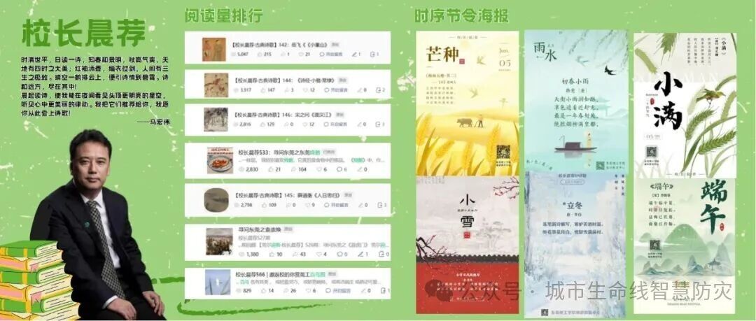 在推动专业人才培养模式创新的同时,马宏伟教授带领团队全面推动学校通识教育改革,通过学校公众号开设“校长晨荐”栏目,向同学们荐鉴古典诗词、赏析古画,已累计百万级阅读量。张伟伟教授创设“力学酒吧”公众号,深入浅出大力普及力学知识,广受师生好评。