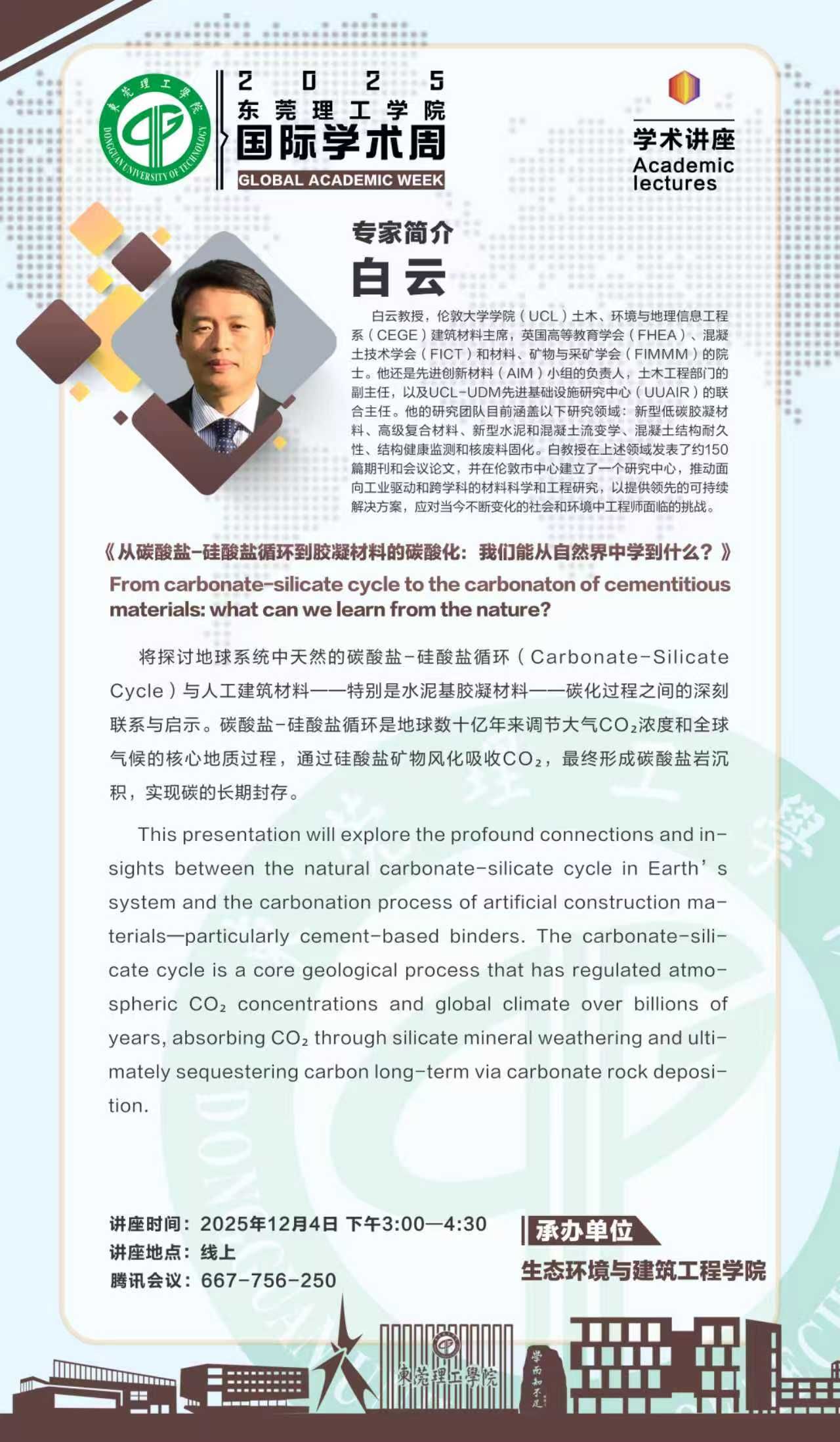 白云教授:从碳酸盐-硅酸盐循环到胶凝材料的碳酸化:我们能从自然界中学到什么?