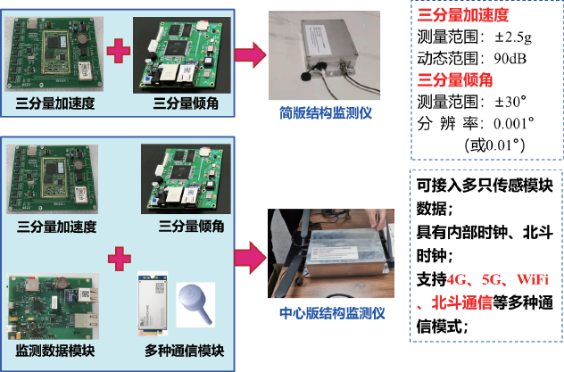 包括低成本高精度MEMS三分量加速度传感模块、三分量高精度的MEMS倾角传感模块、多功能结构智能监测数据管理模块及建筑结构智能监测仪的模块化集成及工程化试制。